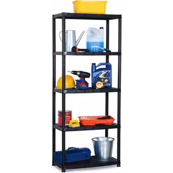 Gr8 Home Lightweight 5 Tier Black Plastic Shelving Unit Storage Racking Shelves Garage Warehouse Home Shed Rack