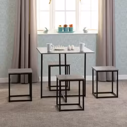 Kent 1+4 Stowaway Dining Set - Stone Effect/Black