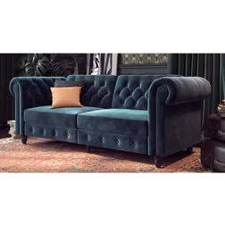 Dimmitt 3 Seater Chesterfield Sofa Bed - Blue (82.6cm H X 227.3cm W X 86.4cm D)