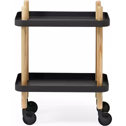 It doesn't get much easier than this to bring things from the kitchen to the living room. The material on the rectangular tabletop is steel.