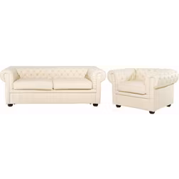 Living Room Set 4 Seater CHESTERFIELD Leather Light Beige