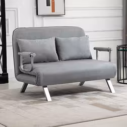 Faux Suede Convertible Bed Settee, 2 Seater Sofa Bed W/ Pillows For Living Room