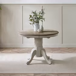 Prestow Extending Round Dining Table In Solid Wood - Traditional Rustic Farmhouse Kitchen - Grey