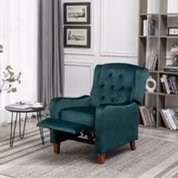 FURNITURE ONE Velvet Wingback Recliner Armchair with Adjustable Backrest & Footrest in Green | Size: 1 Pack