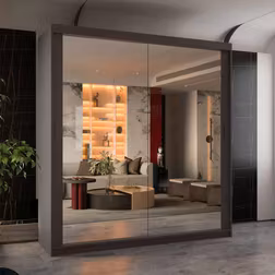 Isabella Sliding Wardrobe with Double Mirrors – 6 Colors & Sizes - Grey (217" H x 90" W x 62" D)