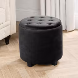 OHS Matte Velvet Stool Storage Ottoman Buttons Modern Home Pouffe Vanity Chair Seat in Black