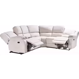 Manual Recliner Corner Sofa 5 Seater ROKKE Fabric Light Beige with USB Port Left Hand