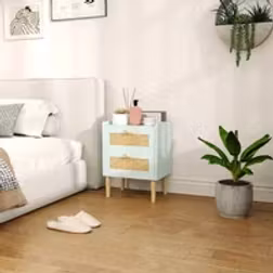 HOMCOM Boho Rattan Bedroom Chest of Drawers - 2 Drawer Dresser - Light Blue | TJ Hughes