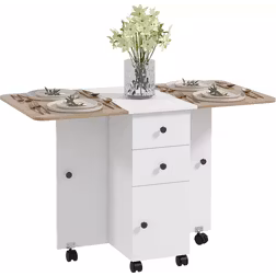 HOMCOM Folding Dining Table, Rolling Kitchen Table With Storage Drawer in Light Oak - One Size