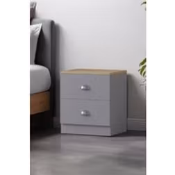 2 Drawer Bedside Chest Matt Grey Oak Top Bedroom Furniture - One Size
