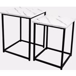 OHS Manhattan Marble Effect Nest of 2 Square Tables - Black/White - Monochrome
