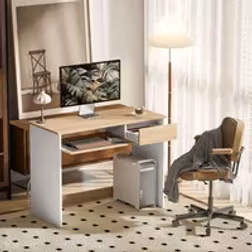 HOMCOM Compact Computer Table With Keyboard Tray And Drawer - Oak | TJ Hughes