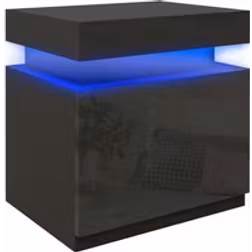 HOMCOM High Gloss Bedside Table with LED Light and 2 Drawers - Black | TJ Hughes