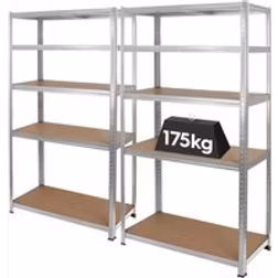 2pc 5-Tier Steel Garage Shelving Units Set - 90 x 40 x 180cm - Galvanised - Silver