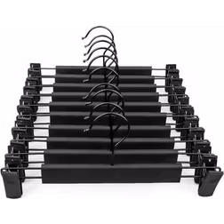 SHEIN 10pcs Black Plastic Clothes & Pants Hanger Set With 2 Adjustable Rust Resistant Skirt Clips And 360 Degree Rotatable Hooks For Jeans & Trousers