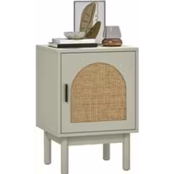HOMCOM Boho Bedside Table with Rattan Door and Adjustable Shelf - Green | TJ Hughes