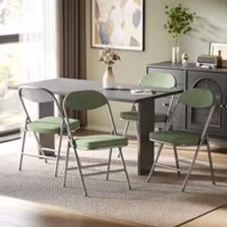 HOMCOM Folding Chairs Set of 4 with Cushioned Seat, Steel Frame, Green, Green