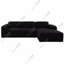 (Black, Right Hand Chaise) SnoozeOnline L-Shaped 3 Seater Corner Chaise Sofa Plush Velvet Left/Right Hand Lounge with Wide Armrests
