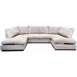 Aspen Full Back 6 Seater U Shaped Corner Jumbo Cord Fabric Sofa - Ivory - One Size