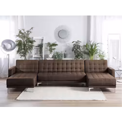 Beliani 5 Seater U-shaped Modular Fabric Sofa Brown Aberdeen, Brown