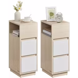 SHEIN Slim Bedside Tables, Set Of 2, Small Narrow Side End Tables With 2 Drawers, 1 Open Compartment Mounted To Face Left Or Right, For Bedroom, Living Room