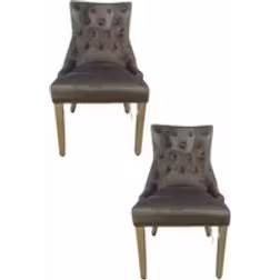 Set Of 2 Plush Velvet Dining Chairs with Lion Head Knocker - Grey - One Size