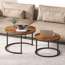 HOMCOM Marble Coffee Table Set of 2, Round Nest of Tables, Rustic Brown - One Size