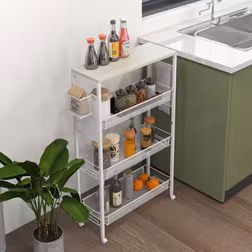 HOMCOM 3-Tier Kitchen Cart, Multifunction Kitchen Trolley on Wheels, White