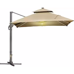 Outsunny 3 x 3(m) Cantilever Umbrella Power Bank Solar Cold Light Khaki | TJ Hughes