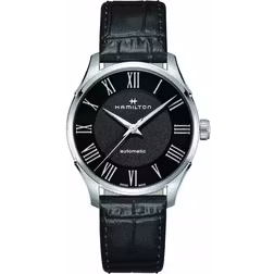 A nice Hamilton watch with a neat leather strap. The glass on the watch is made from sapphire, which is very durable.