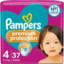 Pampers Premium Protection Size 4, 37 Nappies, 9kg - 14kg, Essential Pack