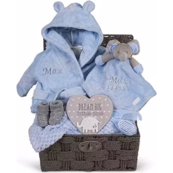 Personalised Baby Gift Basket for Boys Blue Large Gift Baby Hamper Boy Newborn Embroidered Elephant Comforter Baby Shower Special Unique New Custom Soft Cute
