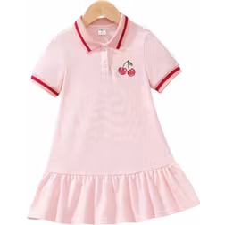 SHEIN Young Girl Cute Casual Short Sleeve Polo Collar Cherry Pattern Dress