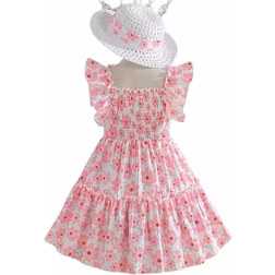 Dress, Colour Pink, Ruffled Dress, Material Polyester, Floral