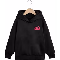 Shein Teenage Girls Casual Printed Black Fleece Lined Hooded Sweatshirt Autumn