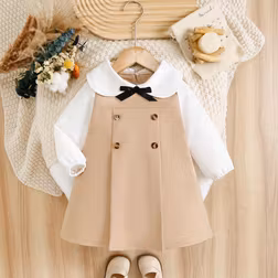 Shein Baby Girl Long Sleeve Bow Decor Dress - Collared