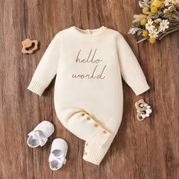 SHEIN Newborn Baby Girl Romper, Stylish Simple Letter Embroidered Long Pants Long Sleeve Knitted Jumpsuit, Soft Comfortable Warm Knitted Romper