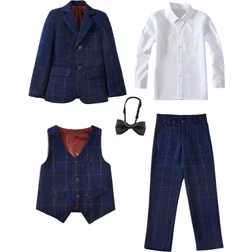 Shein Boys Grid 5-Pieces Suit Set - Navy Blue