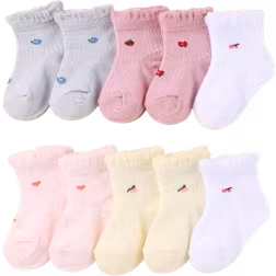 Shein 10 Pairs Of Baby Short Socks With Wrinkled Lace Edges And Jacquard Patterns