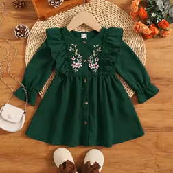 Shein Baby Girl Floral Embroidery Ruffle Trim Flare Sleeve Dress