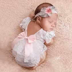 Shein Newborn Girl Lace Romper Set Photoshoot Pink