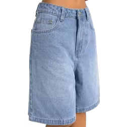 Shein Teen Girls Y2K Fashion Loose Baggy Long Shorts - Light Wash