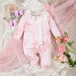 Shein Newborn Girls Elegant Pink Rose Footie Jumpsuit