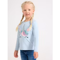 Lindex Cotton Long Sleeved Unicorn Top - Light Blue