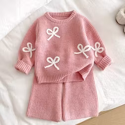 Shein Versatile Cute Bow Decor Girls Pink Knit Set