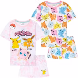 Pokemon Girls Pyjama Set Pj 2 Pack Short Sleeve Lounge Nightwear Sleepwear