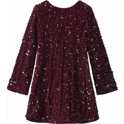 Name It Girls Long Sleeve Bow Back Sequin Dress - Dark Red, Dark Red, Size 3-4 Years - 3-4 YEARS
