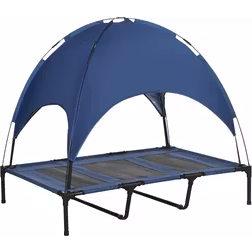 PawHut 122cm Elevated Dog Bed Cooling Raised Pet Cot UV Protection Canopy Blue | TJ Hughes