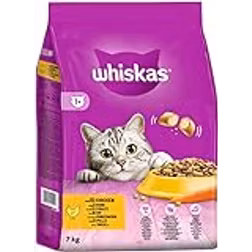 WHISKAS - 1+ Adult Dry Cat Food - 7kg - Biscuits Made with Chicken - Bulk Cat Food Bag