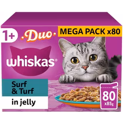 Whiskas Duo Surf & Turf Adult Cat Food Pouches in Jelly 85g 80-pack
